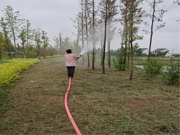 连日来持续高温,暑热达到了高峰,人们都在想尽办法消暑纳凉,但养护工人却顶着烈日酷暑按时作业,将草地和树林作为战场,在高温下一丝不苟地维护作业,每天按时给花草树木补充水分,让绿色植被保持旺盛的生命力。